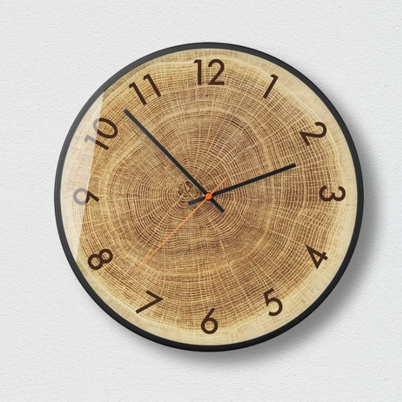 12 Inch Round Wooden Wall Clock Glass Simple Creative Decorative