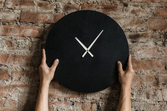 Black Minimalist Wall Clock Wooden Wall Decor Simple Wooden Etsy